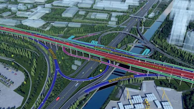 工程采用“主线高架+地面辅道”以及同济路快速路的三系统总体方案,其中G1503高速公路采用双向6车道规模高架,主要服务货运交通;而同济路快速路采用双向4车道,主要服务客运交通;地面富锦路则为城市主干路,采用双向4车道,服务地区交通。据悉,同济路快速路全长约3.2公里,富锦路全长约3.8公里。
