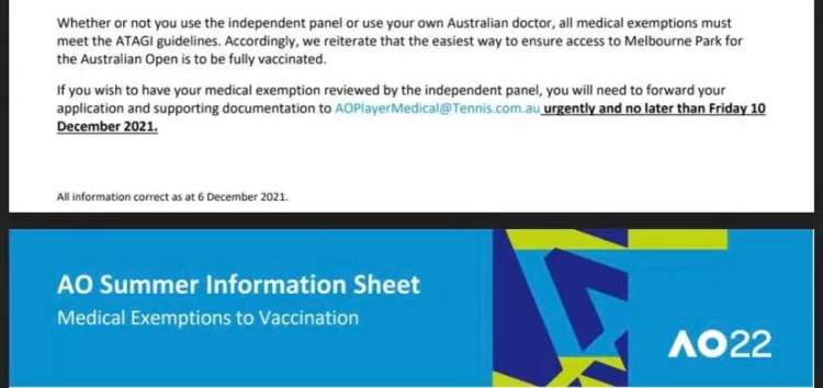 3、根据律师文件,德约11月18日获得了前往澳大利亚的签证。但同样根据这份文件,德约于12月16日第二次感染新冠,符合澳网医疗豁免的条件(半年内感染新冠免注射疫苗)。但澳网协官方文件中,提交医疗豁免的截止日期是12月10日。律师文件是存在矛盾之处的——德约如何在11月预言自己要得新冠?