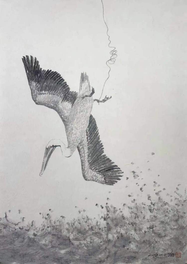 艺术家何曦虽然笔下没有直接画上海,但他对于人和城市的关系描绘,城市带给当代人隔膜、疏离感的描绘,常常带有寓言性质,令人叫绝。何曦说,是上海这座城市成就了今天的我。我五六岁就从北京来到了上海生活,能感受到城市里那种人与人之间的疏离感。在上海,人跟人的交往是有分寸的,不善于跟人交流的我就更把自己封闭起来。但我又是一个喜欢看外面的人,所以马尚龙老师讲我是在屋里看屋外的感觉,是隔了一层玻璃窗的感觉。我后来画了代表城市的符号——玻璃。我认为,玻璃让人可望不可即,这代表了我对于城市里人与人关系的看法。