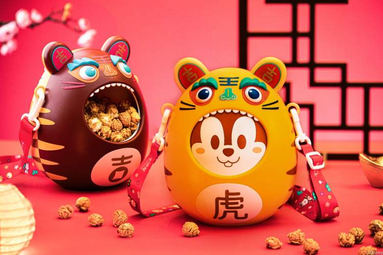 除了美食,一大波新年礼物也在路上。代表着吉祥如意的老虎元素是这一季商品设计的亮点,可爱的图案与传统纹样相结合,彰显迪士尼特色。