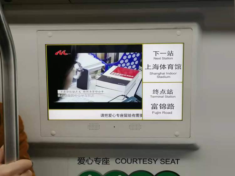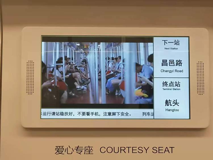 为此,17号线、1号线、12号线、18号线等线路的列车车厢内,信息显示系统进行了优化。优化后的电视信息屏,在原来的内容显示基础上增加了站点信息定时播放功能。