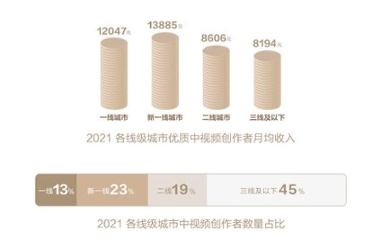 报告指出,中视频创作正成为返乡年轻人的一种新选择。居住在三线及以下城市的中视频创作者,数量占比达到45%。