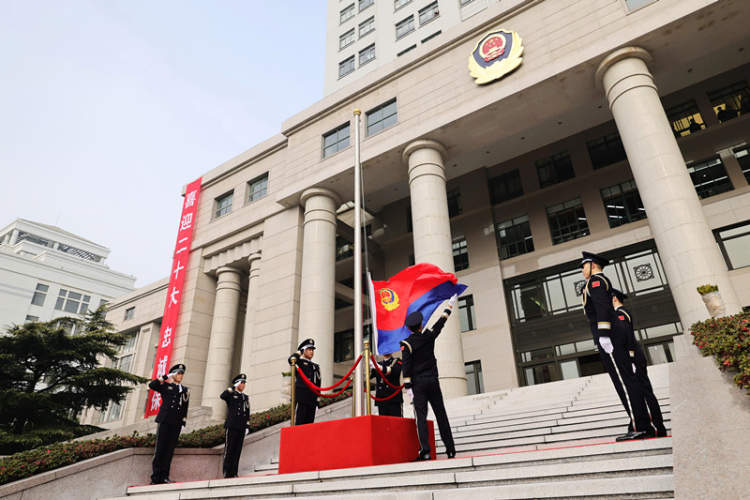 1月10日上午10时,浦东公安分局在丁香大楼南广场,举行了第二届中国人民警察节升警旗仪式。