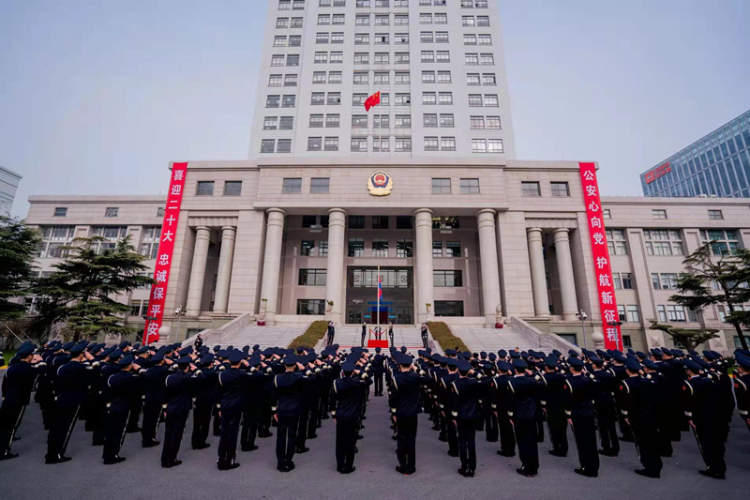全体民警警容严整,齐向警旗敬礼。同一时刻,分局各单位同步举行升警旗仪式。