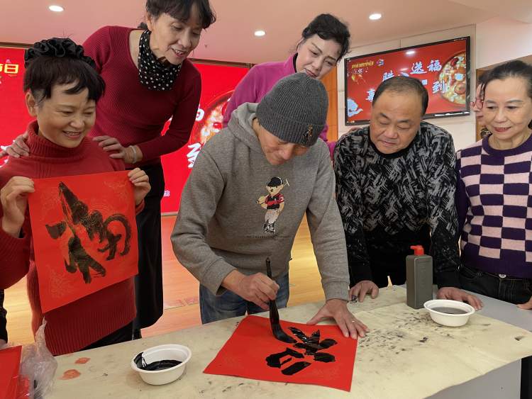 腊八向人们传递进入“年关”的信号,预示着春节的来临。现场,舞蹈队成员里面一位擅长书法的叔叔为大家写下了迎新“福”字,送到每个人的手里,年味儿一下就来了。