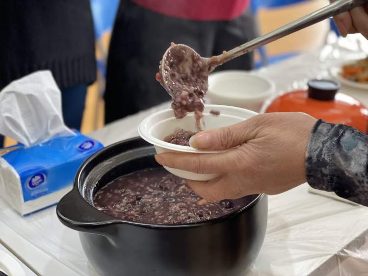 严阿姨说:“这是第一次和舞蹈队的成员们一起过腊八,大家一起跳舞、参与知识问答、分享美食,特别开心。”