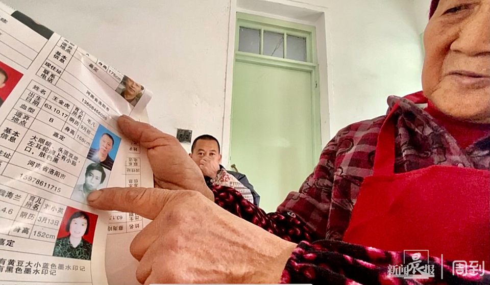 另外一边,寻亲团的志愿者们也发动了民间的力量,帮助王金虎一同找寻亲人。12月24日,有志愿者拿着印有王金虎照片的传单,来到了秦家。他们指着王金虎的照片,认真地询问秦振英像不像自己的儿子,80岁的老人仔细端详照片许久后,激动地表示道,“像,像!”