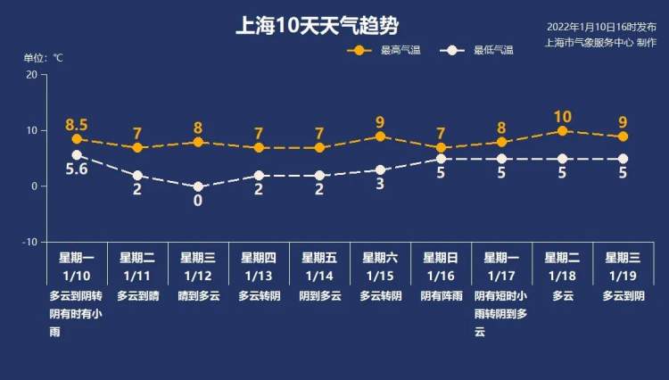 在这两波冷空气悠悠的吹拂下,申城的最高气温在7-9℃间小幅震荡;最低气温仅能做到离开冰点,其中周四到周六徘徊在2-3℃,周日起到下周初有望升至5℃左右。
