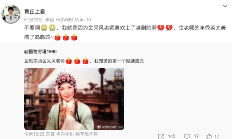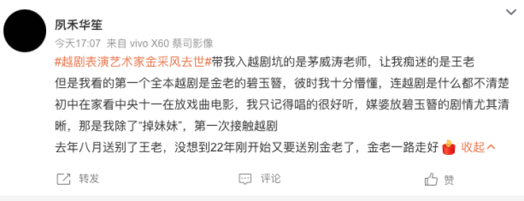 消息传来,也让广大戏迷猝不及防,纷纷发文悼念: