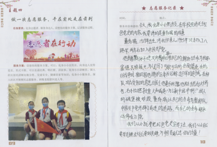 伊伶向记者介绍道:“我们不断丰富学生社区实践活动形式,将活动与党史学习教育结合起来,希望能进一步激励少先队员和青年团员们坚定理想信念,继承和发扬党的光荣传统和优良作风,激发他们的历史责任感”。