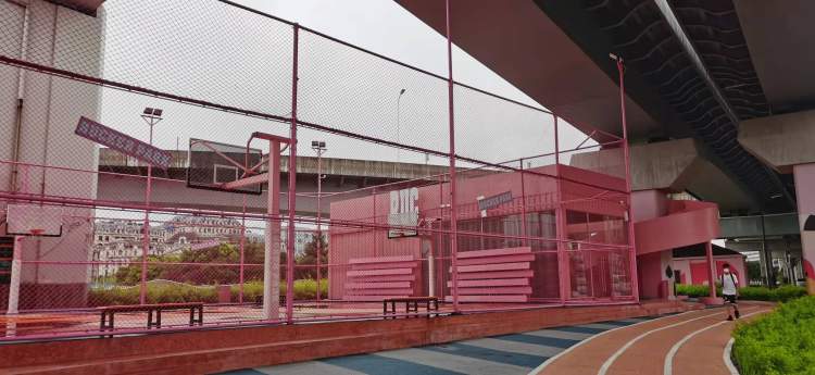 记者看到,长宁区的中环桥下的场地分为四个部分,采用三种动物形象作为主题展现,分别是粉色的“火烈鸟”、深黄色的“猎豹”、黑白条纹的“斑马”,囊括体育服务中心、带顶篷的篮球场、室外篮球场、足球场、沿岸步道和猎豹景观绿化公园等。