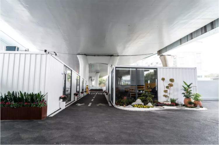 据市道运局披露,道班房在改造时,其外部遵循“留白”的原则,充满设计感,与徐汇区市容市貌及周边街区环境相融合。功能使用区域划分合理、人车分离清晰,由多个集装箱组合成的内部建筑更有层次感,同时兼具模块化可移动、安全性完整以及生态环保的设计理念。
