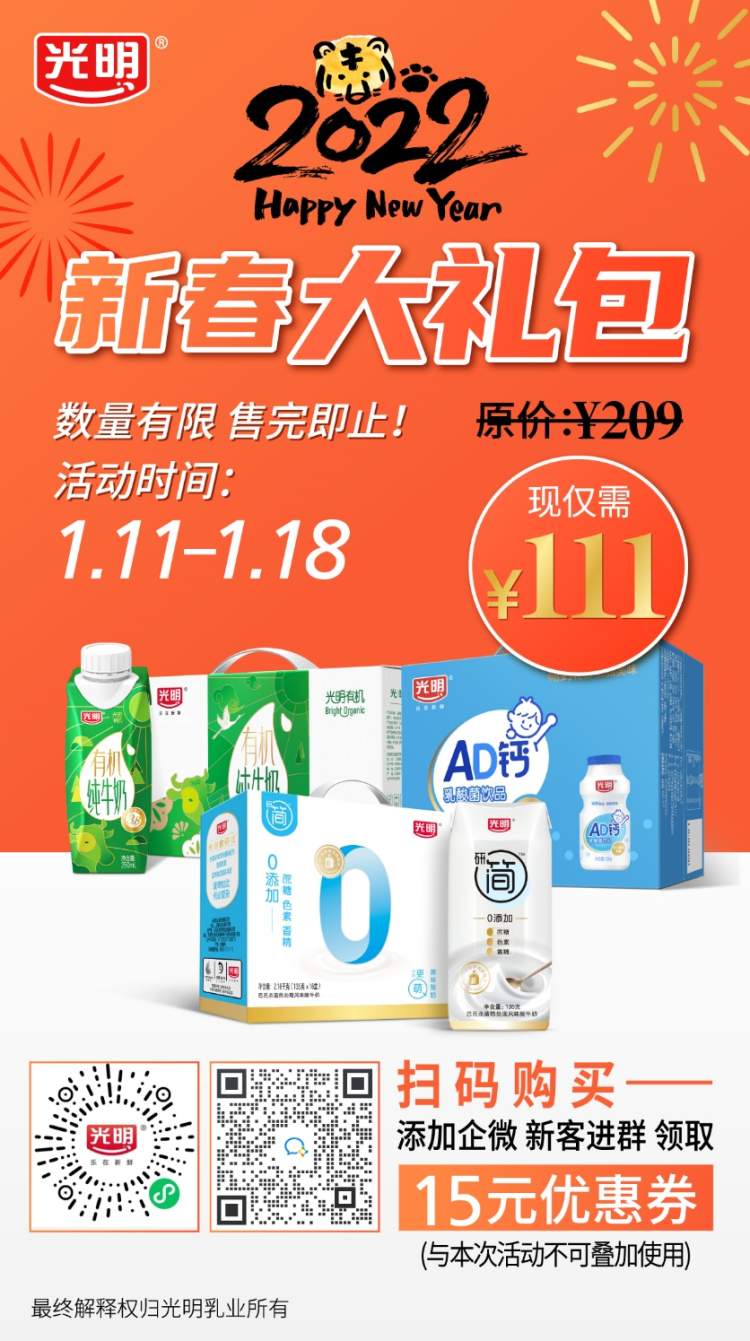 不仅如此,光明乳业旗下的光明悠焙、牛奶棚食品、光明冷饮、光明乳业微商城等,都将结合“111周年”主题推出具有各自特色的营销活动,和广大消费者一起欢欢喜喜迎接虎年。在公交站,地铁牌、楼宇大屏幕等线上平台,光明乳业也会为消费者送上海量祝福。