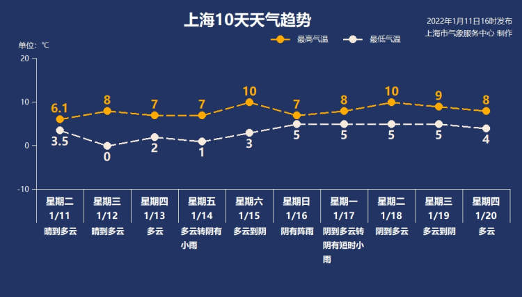上海中心气象台预计:明晨市区最低气温跌至冰点,郊区仅有零下4℃到零下2℃,有薄冰或冰冻。