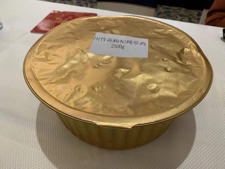 记者获悉,为了尽可能让市民能够在家做出堂食菜品的同等水准,老字号大厨们可谓动足了脑筋。比如大师家宴B套餐里的汤品——川竹荪枸杞炖草鸡,就被盛放在一个金灿灿的铝制锅具中,整个半成品足有5斤重。最重要的是,因为升级了材质,市民烹饪的时候可以直接将铝锅放在炉灶上加热,且重复烧制两次不会破损,端上桌时锅体也不会发生变形。