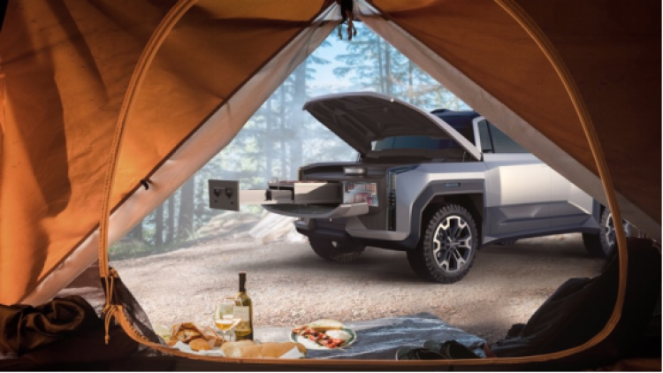 作为一台电动车,03 超级SUV没有了传统意义上的前舱,这主要得益于滑板底盘高度集成的布置形式,通过将电驱系统、热管理系统、电池布置于地板之下,可以做出更好的空间体验、功能布置。因此能够具备更强的空间扩展能力,可根据功能需要来进行设置。例如可以将一个电能厨房塞进了前备箱,解锁全新的野营模式。