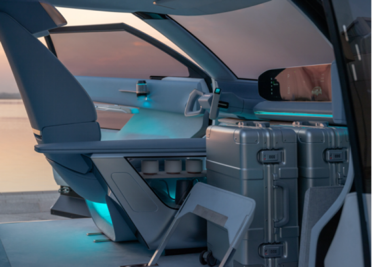 特别是内饰方面,由于02超级MPV取消了传统的副驾座椅,以更为实用的电动行李架模块代替,可以有效固定不同尺寸的随身行李,便于取放。当然,这个区域也可以根据车辆的使用场景配备座椅及其他功能模块,例如储物、饮料等,打造百变实用空间。