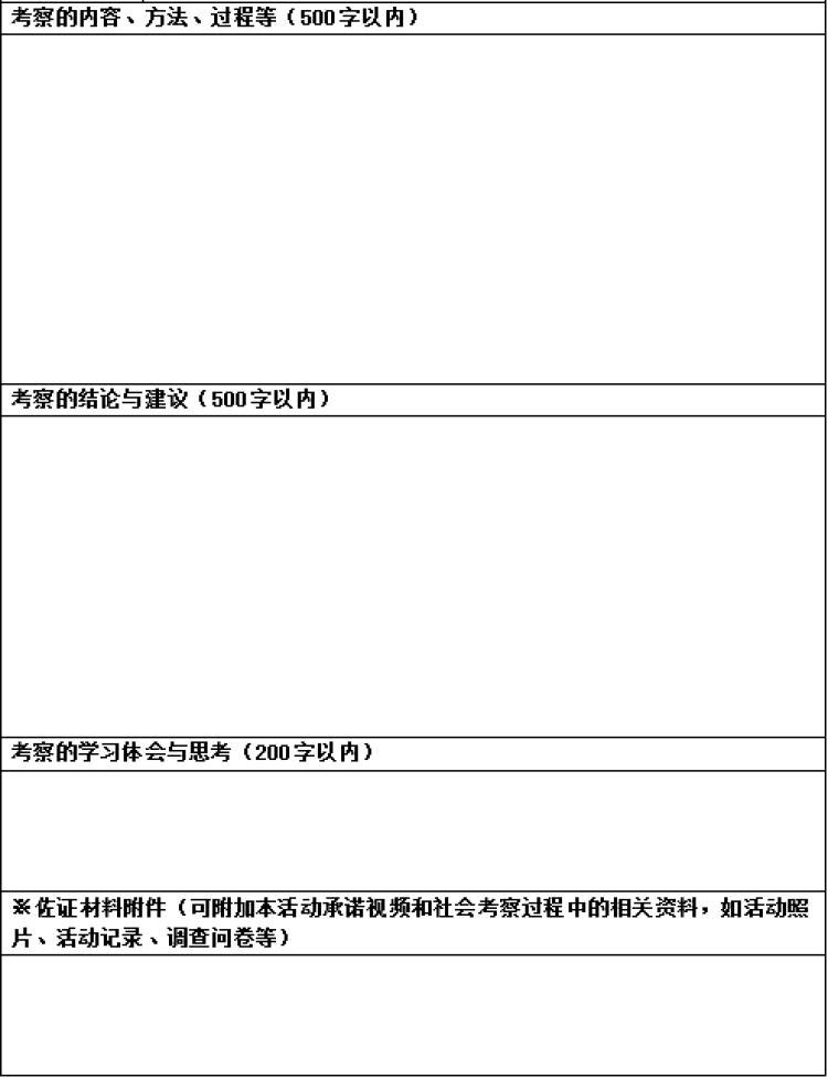 2)本次活动要求考察报告包含三部分,第一部分:考察的内容、方法、过程等,第二部分:考察的总结与建议,第三部分:考察的学习体会与思考