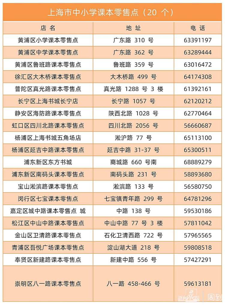 共20个!上海市中小学课本零售点地址请收好,寒假备用! 李星言 2022-1-12 来源:周到上海 寒假马上要到啦!每逢这时,总会有不少家长来问周到君,新学期教材在哪里买。 周到君获悉,为解决个别学生在特殊情况下的教材订购问题,上海新华传媒连锁有限公司在各区设课本零售点(共20个)以方便学生个别购书。 为确保2022年春季教学用书及时到位,上海市教育委员会、上海市新闻出版局日前发文,要求各区教育局、上海新华传媒连锁有限公司、各区新华书店,根据市教委颁发的《2022年春季上海市中小学教学用书目录》,认真做好教学用书征订工作。 来源:周到上海 作者:李星言 赞一个 (0)