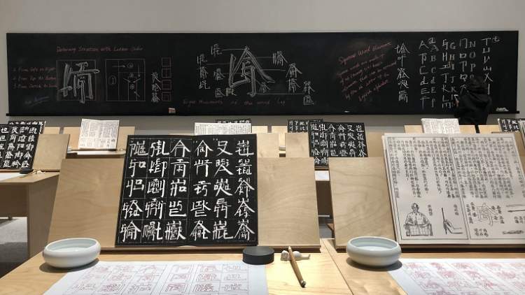 随着写字等级考试进入义务教育考试标准,练习毛笔字已经成为了学生们的日常。在浦东美术馆3楼,徐冰打造了一间特别的书法教室,供你学习脑洞大开的“英文方块字”。
