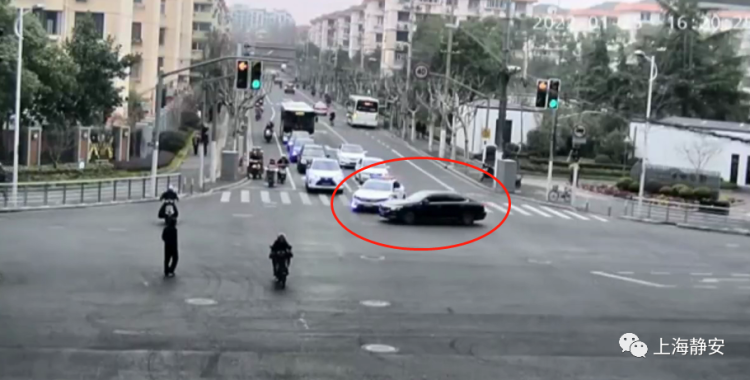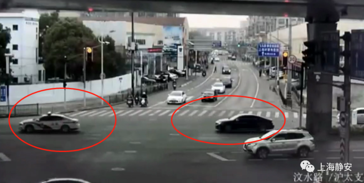 当警车行至原平路汶水路口等红灯时,