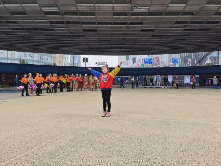 1月25日中午十二点半,五角场广场上行人正多。一阵嘹亮高昂的男声演唱吸引大家慢下脚步,驻足观看,原来这是五角场街道举办的“吾”新春·快闪活动。