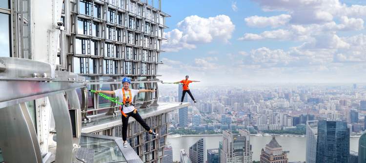 春节期间,“金茂云中漫步” 对外开放,云中漫步全长60米,宽1.2米,距离地面340.6米,是目前世界摩天大楼中超高的开放式、无护栏、全透明的空中步道。