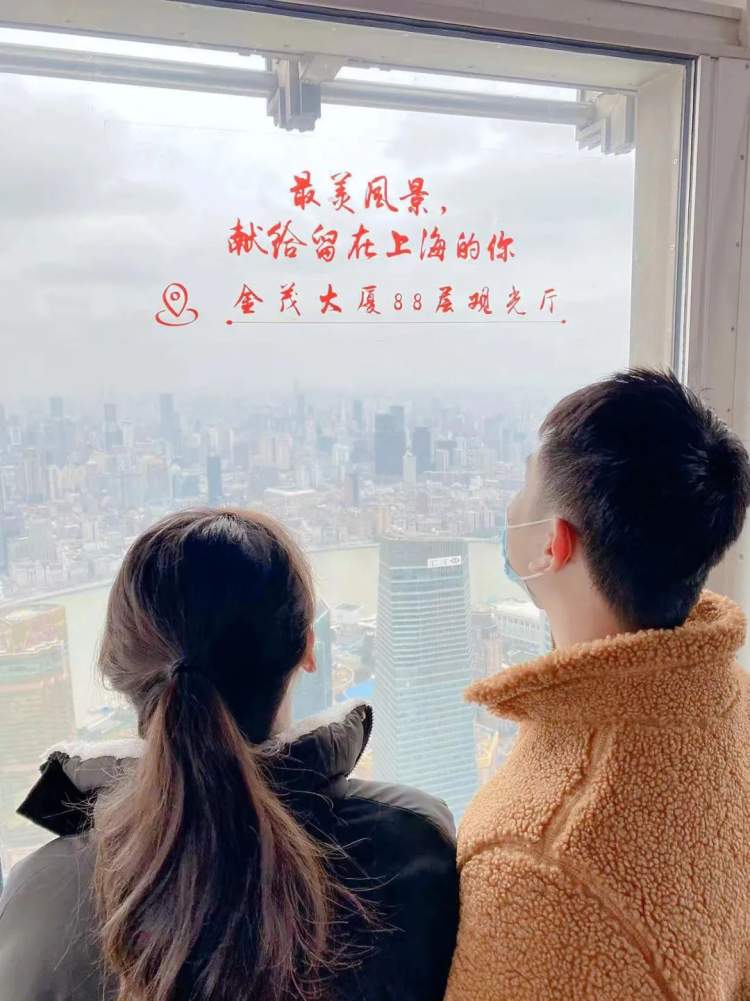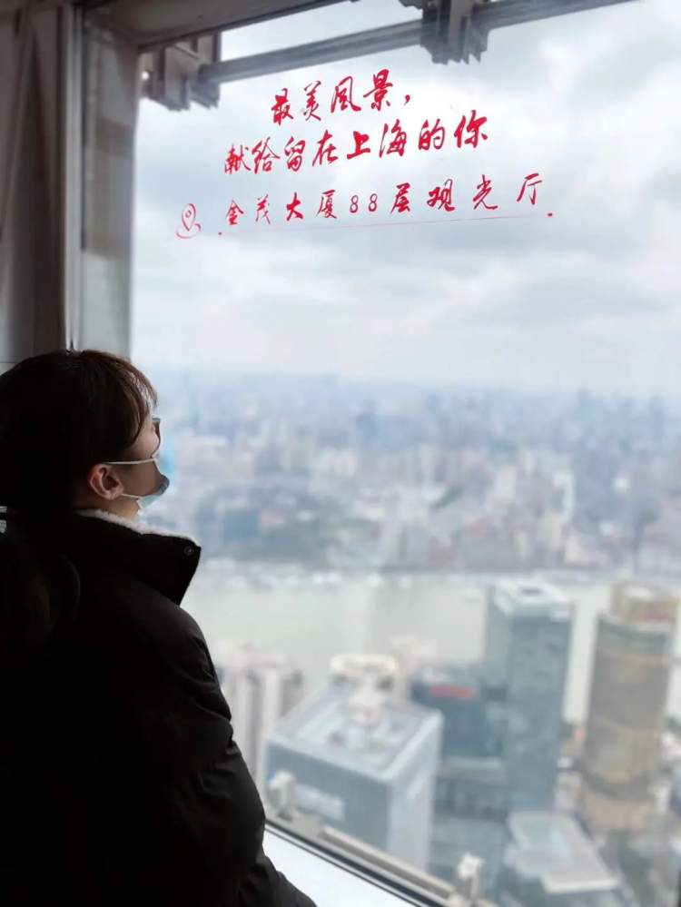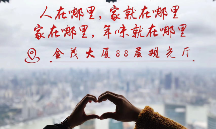 新年步步高、节节向上攀,用登高的方式为新的一年祈福。新春之际,金茂大厦88层观光厅特别推出城市之颠送祝福活动,用窗花标语为在沪过年的市民朋友送上最暖祝福。