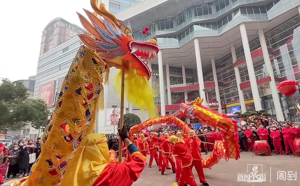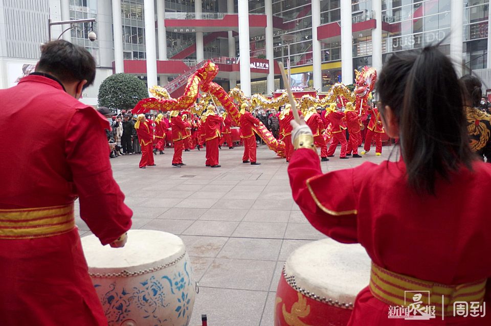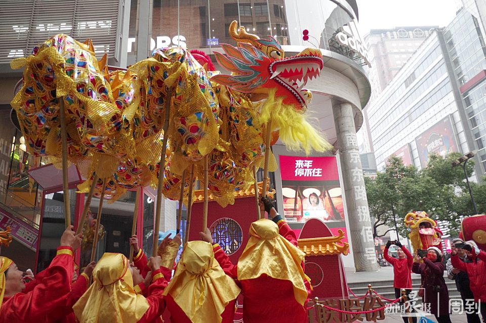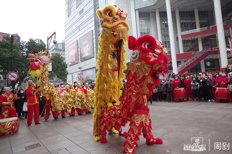 舞龙舞狮是传统的贺年习俗,每当锣鼓声响起,龙狮飞腾,热闹的节奏中传达出浓浓年味和诚挚祝愿。2月1日,大年初一上午,南京路步行街上锣鼓喧天、热闹非凡,商家为广大市民朋友和游客带来精彩的舞龙、舞狮表演。