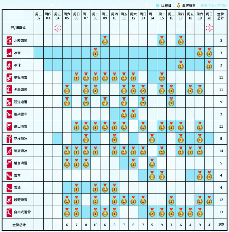 赛程内容来源于《北京2022年冬奥会竞赛日程 第十二版》,时间安排可能会有变化