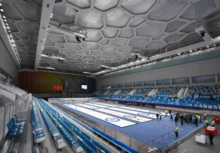 在这里,建筑、结构、制冰、除湿、照明、声场等众多科技领域新成果得到应用。冰壶比赛对冰面平整度要求极高,每平方米在承受150公斤重量的情况下,冰面变形不能超过1毫米,冰壶在赛道上不断滑动、制冰师的反复修冰,甚至室内环境的些许变化,都会让赛道表面发生微妙的改变。同时,冰壶比赛要求场馆湿度在30%以下,冰面温度约在零下8摄氏度,冰面以上1米空气温度在10摄氏度,馆内温度在16摄氏度以内,这些因素会直接影响冰壶与冰的摩擦系数,决定赛道品质。