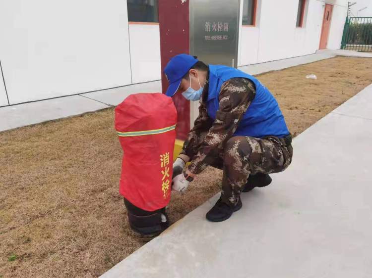 ▲“蓝马甲”为消火栓穿上“保暖服”