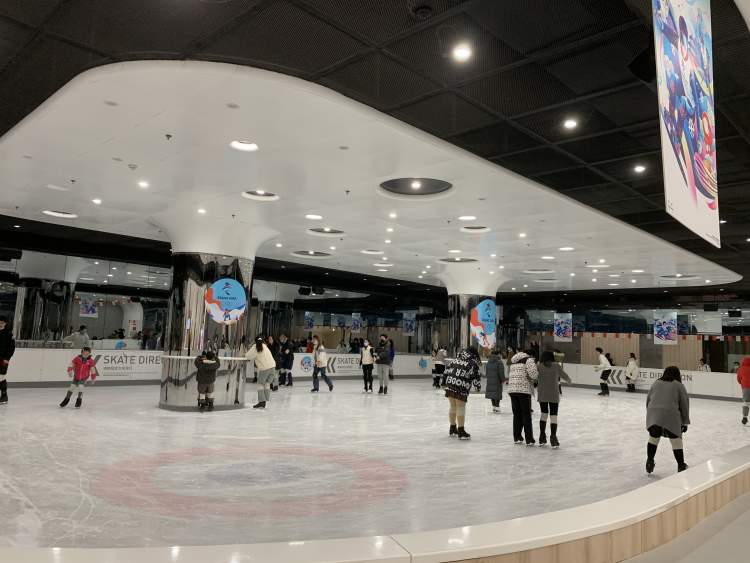 新世界城6楼的冰雪乐园采访是在一个周五的下午进行的,滑冰场的冰面不算大,但正在滑冰的却至少有十几人,大多扶着外圈的栏杆慢慢滑行,只有个别几个技术熟练的顾客在冰场中央,偶尔还能跳出几个漂亮的旋转动作。