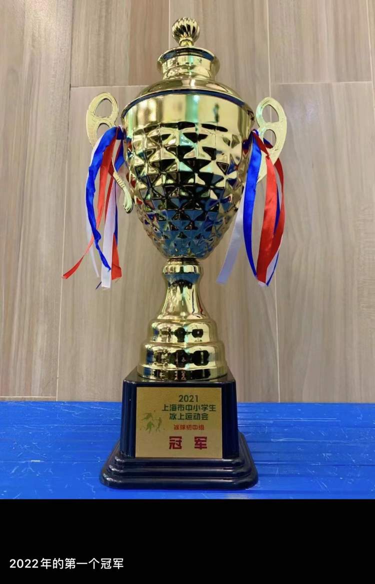 刘仁就是上海全明星滑冰俱乐部冰球队的教练,出生成长与齐齐哈尔的他从小就喜欢上了滑冰,接触了冰球后被校队选中并接受了专业训练,最后踏上了冰球选手的职业生涯,退役后来到上海,成为了职业冰球教练兼裁判。就在今年1月9日,他在朋友圈中发了一张冠军奖杯的照片,奖杯上刻着“2021上海市中小学生冰上运动汇冰球初中组冠军”的字样,配文为:2022年的第一个冠军。