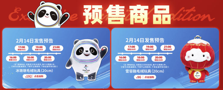 记者在天猫奥林匹克官方旗舰店看到,目前冰墩墩、雪容融玩偶、摆件等均有定时限量预售,不过每一个时段的供应量有限,仍会出现“秒空”的现象。不过,预计发货时间一般都在30至45天以内,相较线下门店的到货时间仍有很大优势。