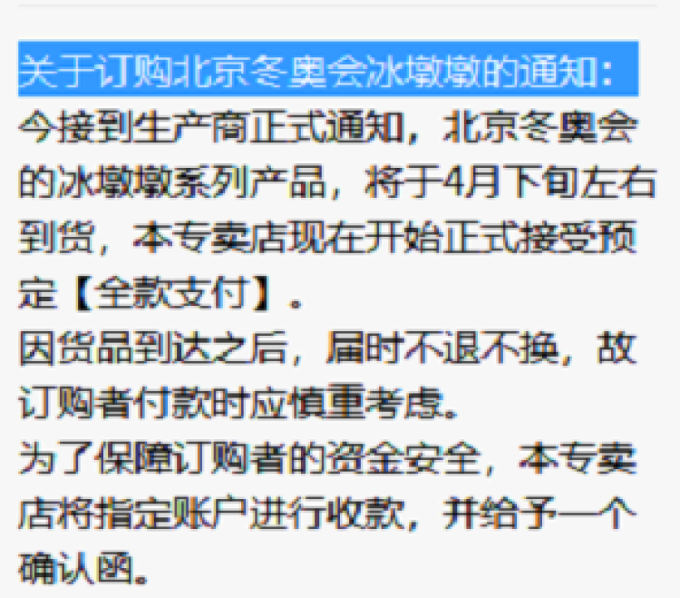 起因是群主更新了群公告,其中显示:接到生产商正式通知,北京冬奥会的冰墩墩系列产品,将于4月下旬左右到货。