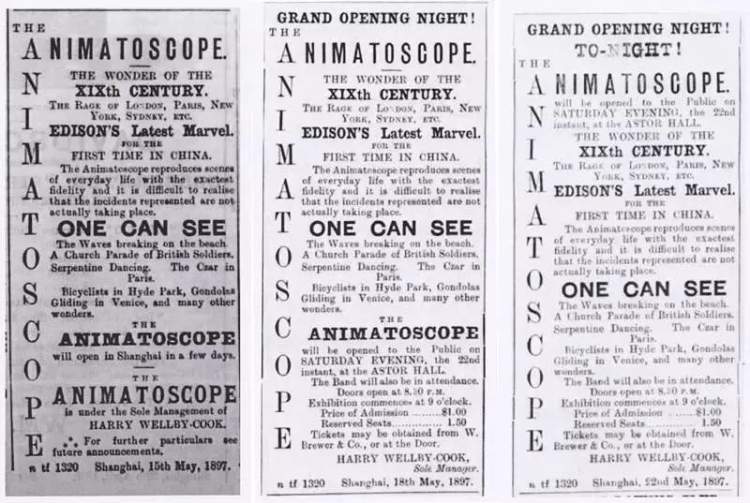 电影放映前,《字林西报》在1897年5月15日刊出一份放映广告,这是目前发现的最早的一则电影预告。