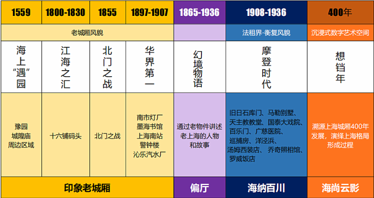 以上海城市文脉发展为主线,分别呈现上海格局形成的阶段性标志和历史风貌
