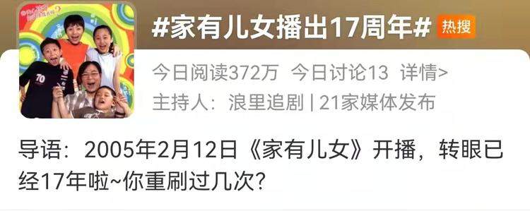 随着这两天#家有儿女播出17周年#挂上热搜,熟悉的旋律又在很多人耳边响起。