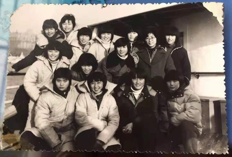 ■上海第一代女足集体照,前排左一为水庆霞,中排右二吴文铮