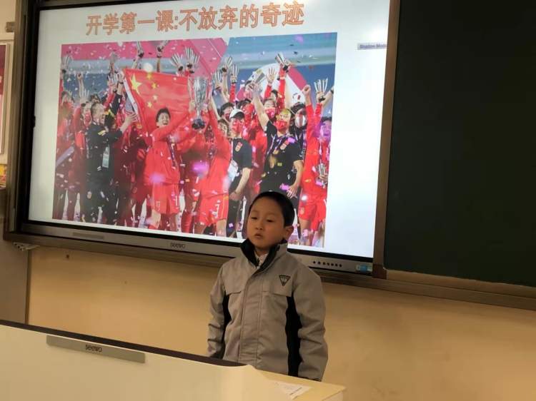 汇师小学宓莹校长介绍:“刚刚过去的寒假,观看体育赛事成为学子们的主旋律。而国家女足亚洲杯上的夺冠,特别有励志意义和教育价值,她们理应成为未成年人的榜样。”