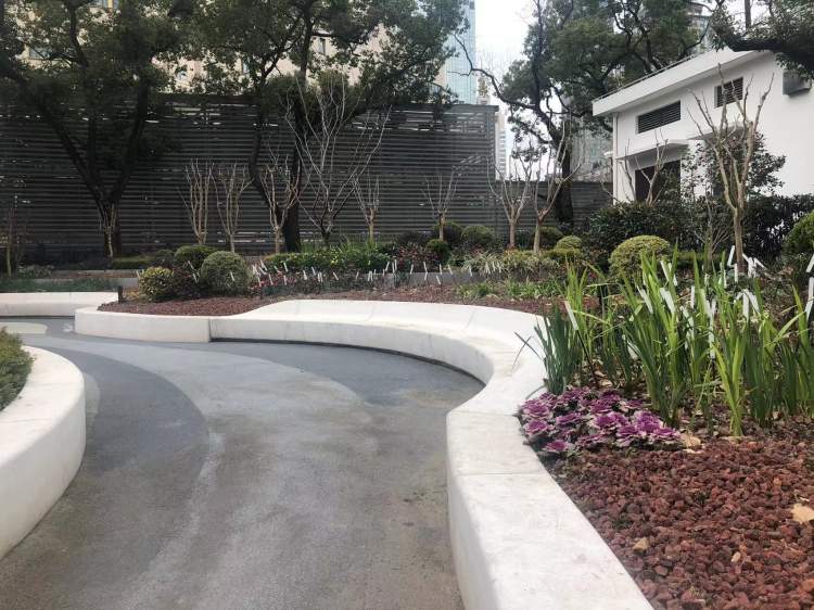 静安区绿化部门介绍,威海路花园的面积仅1860平方米,在改造中将原来割裂的广场空间全面打开,可同时满足通行与休憩的需求。花坛通过混凝土塑形,形成一系列靠背座位空间,增加舒适性。花园里还制作了独特树叶造型的亭廊,供游客避雨及休憩。