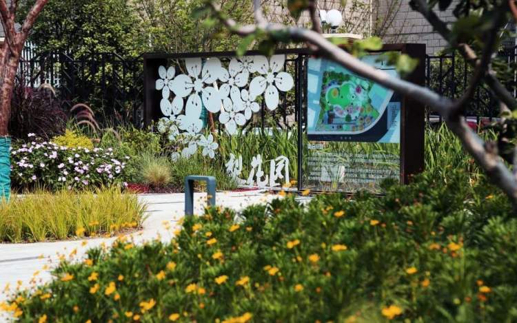 口袋公园要具有一定的历史风貌和人文景观特色,与区域周围环境相协调。在景观上,口袋公园以植物造景为主,突出观赏性乔木、灌木、宿根地被的搭配,体现季相变化,春花秋色效果显著,四季有景。