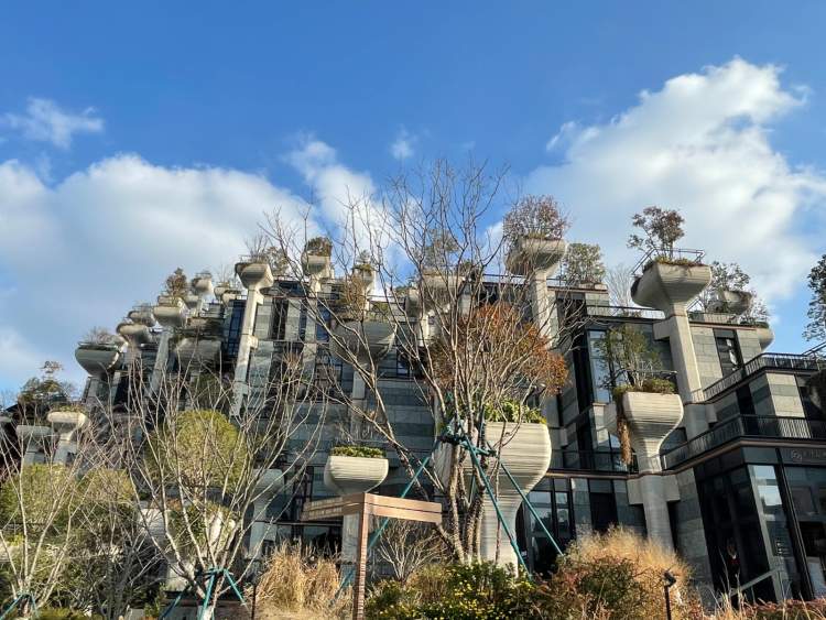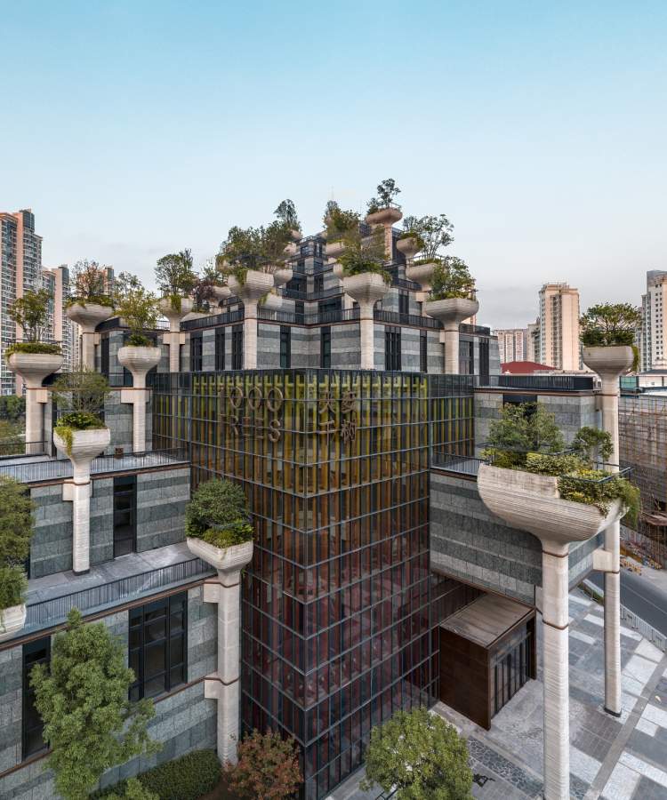 曾几何时,每次驱车去莫干山路M50看展,下昌化路桥,远远看到一幢被层层包裹在脚手架里的建筑,它的顶端冒出微微波澜绿意——那居然是一棵棵长在建筑顶端的真树!去年底,这幢让人印象深刻的建筑终于展露美丽容颜,更被誉为“悬浮花园”、古巴比伦空中花园”……