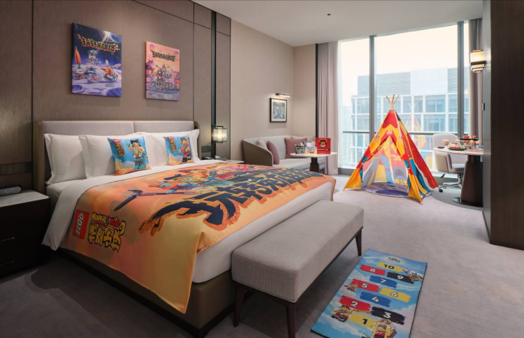 据了解,此次跨界合作选用的乐高悟空小侠系列是以中国经典名著《西游记》为设计灵感,除外,整个主题房的打造还增加了印有银河探索号宇宙飞船的迷你帐篷和“玩转英雄路”游戏地垫等,供孩子们玩乐和体验的同时,也营造了一家人尽情享受宅酒店微度假的乐趣。