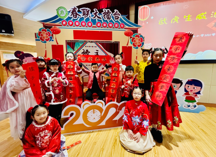 早在大年初一,学校就发布了春联擂台赛的征集令:要求春联内容须含有“武”“虎”两字,横批中带有“活”字。春联中的“武”“虎”“活”自有其深意:“虎”年新学期,“武”宁全体师生将重温校训“活”的内涵,凝练“活”的校训精神,呈现“活”力满满,与此同时,结合“双减”政策深化落实和普陀“十四五”适合教育核心理念的学习讨论,践行“活”教育,走进新“适”界。