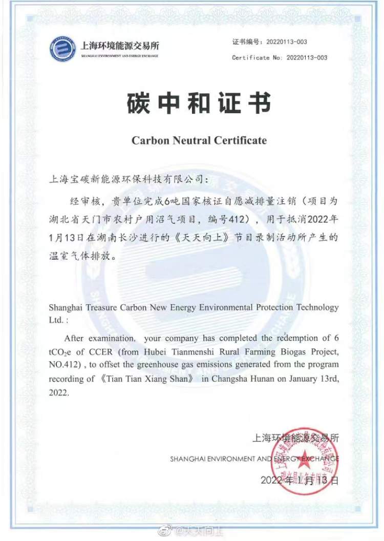 随着双碳目标的提出,一批新兴职业也随之诞生,碳交易师朱伟卿受邀来到现场,揭开该职业的神秘面纱。有意思的是,他对节目现场进行碳排测算、用减排量进行了抵消,让本期《天天向上》成为“国内首个碳中和综艺节目”。