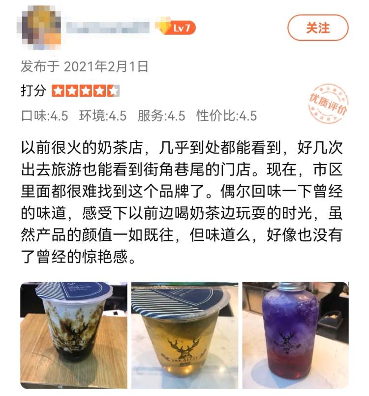对于上海地区的消费着来说,鹿角巷已是一个被湮没在茶饮市场激烈竞争中的牌子。在已暂停营业的山寨“曹阳路店”点评页面中,曾有顾客这样写道“以前很火的奶茶店,几乎到处都能看到,现在市区里很难找到这个品牌了。”