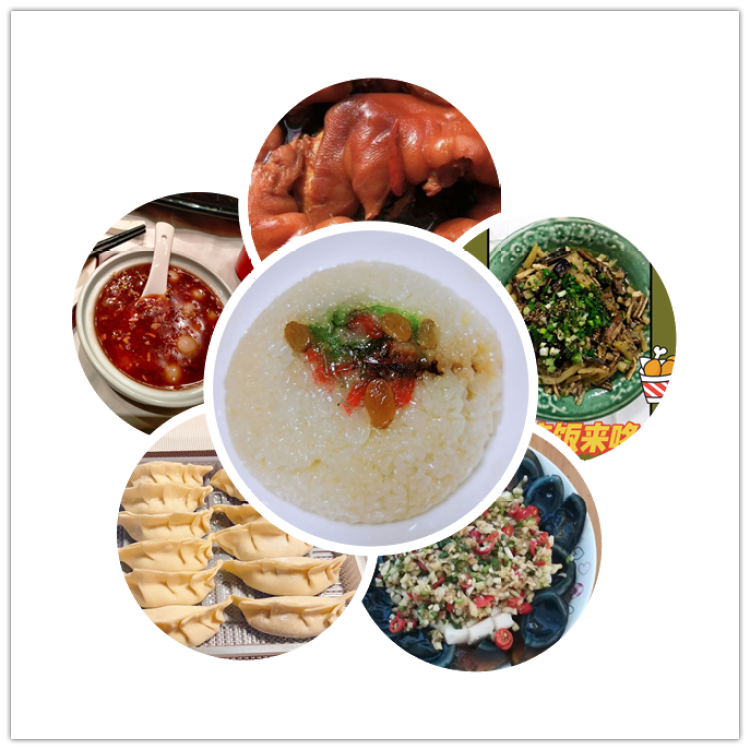 红烧肉、八宝粥、藕夹、馄饨、全家福煲、拔丝地瓜、肉圆、响油鳝丝、笋干百叶结、熏鱼、红肠、红烧羊肉、鸡汤、水笋烧肉、盆菜、台湾草虾、辣子鸡、鳗鱼、鲍鱼、鸡、溶岩蛋糕、馅饼、水果羹、四喜烤麸、利村牛肉、八宝粥、蔬菜、蛋饺汤、冬笋、油爆虾、水笋烧肉圆、春卷、龙虾片、排骨藕汤、全家福、新疆大盘鸡、炖海鲜、红豆汤、汤圆、双皮奶冻、糯米鸡、新疆大盘鸡、四喜丸子、扣三丝、小酥肉、什锦菜、猪手……