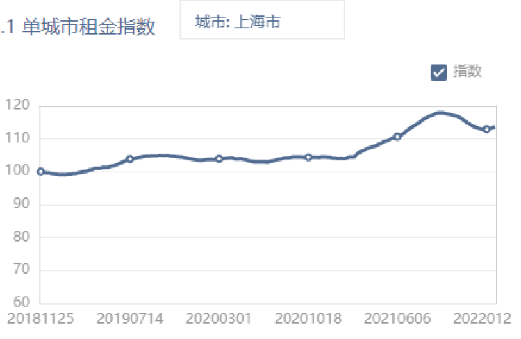 从各城区的租金变化来看,崇明涨幅最大,为5.97%;其次是金山,租金上升1.56%;跌幅最大的是松江,环比下降0.15%。
